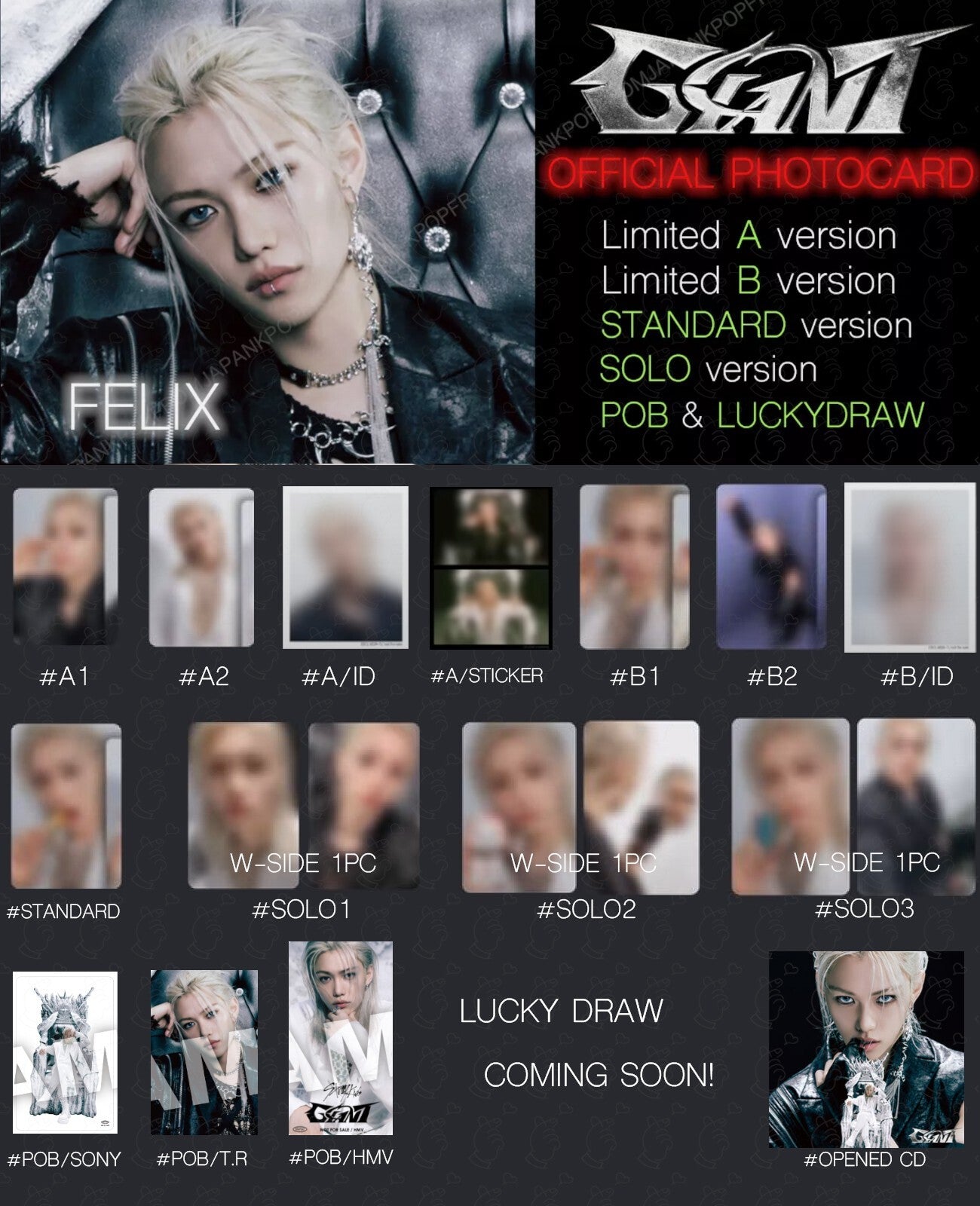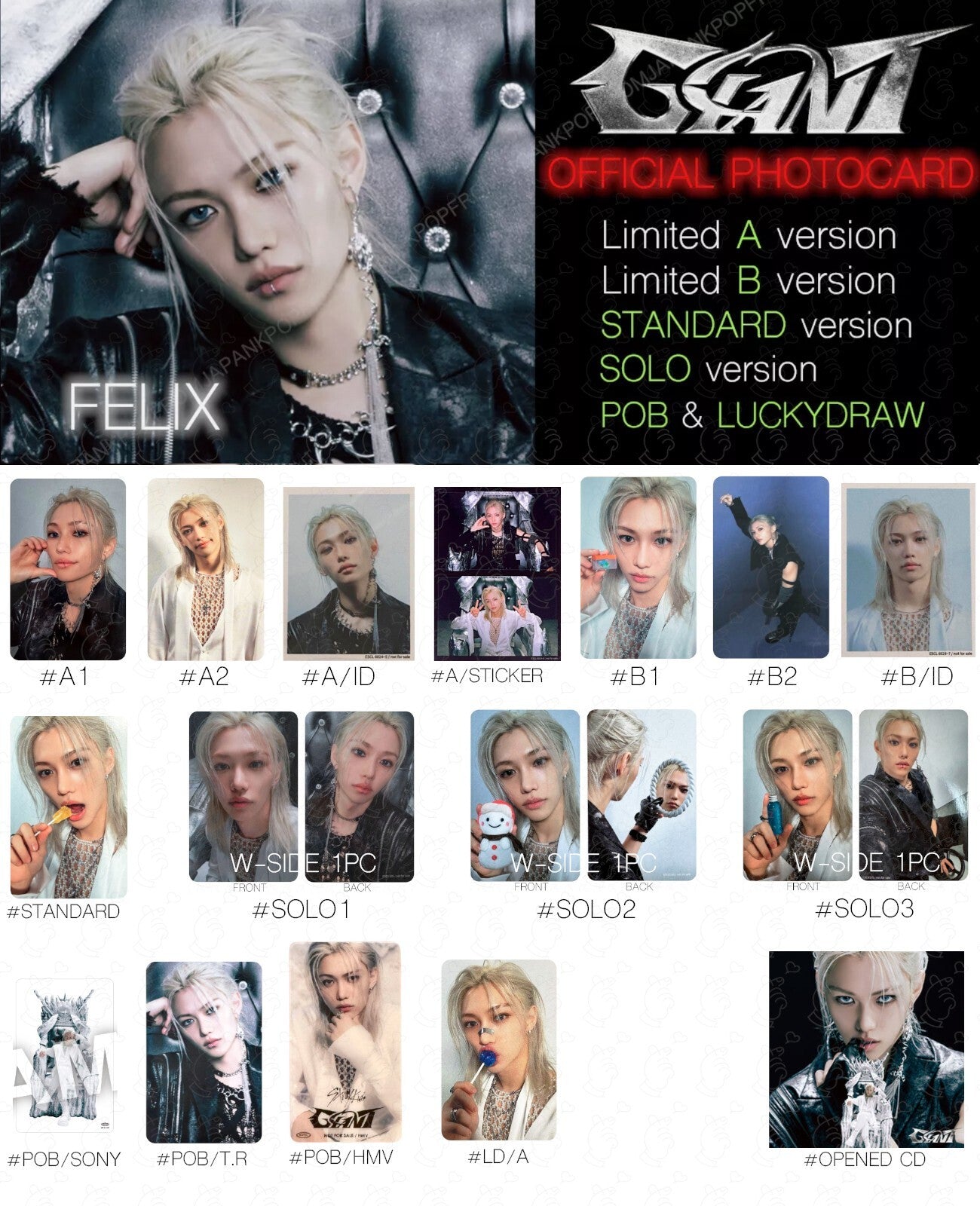 FELIX STRAY KIDS GIANT JAPAN ALBUM PHOTOCARD POB LUCKY DRAW SOLO SONY